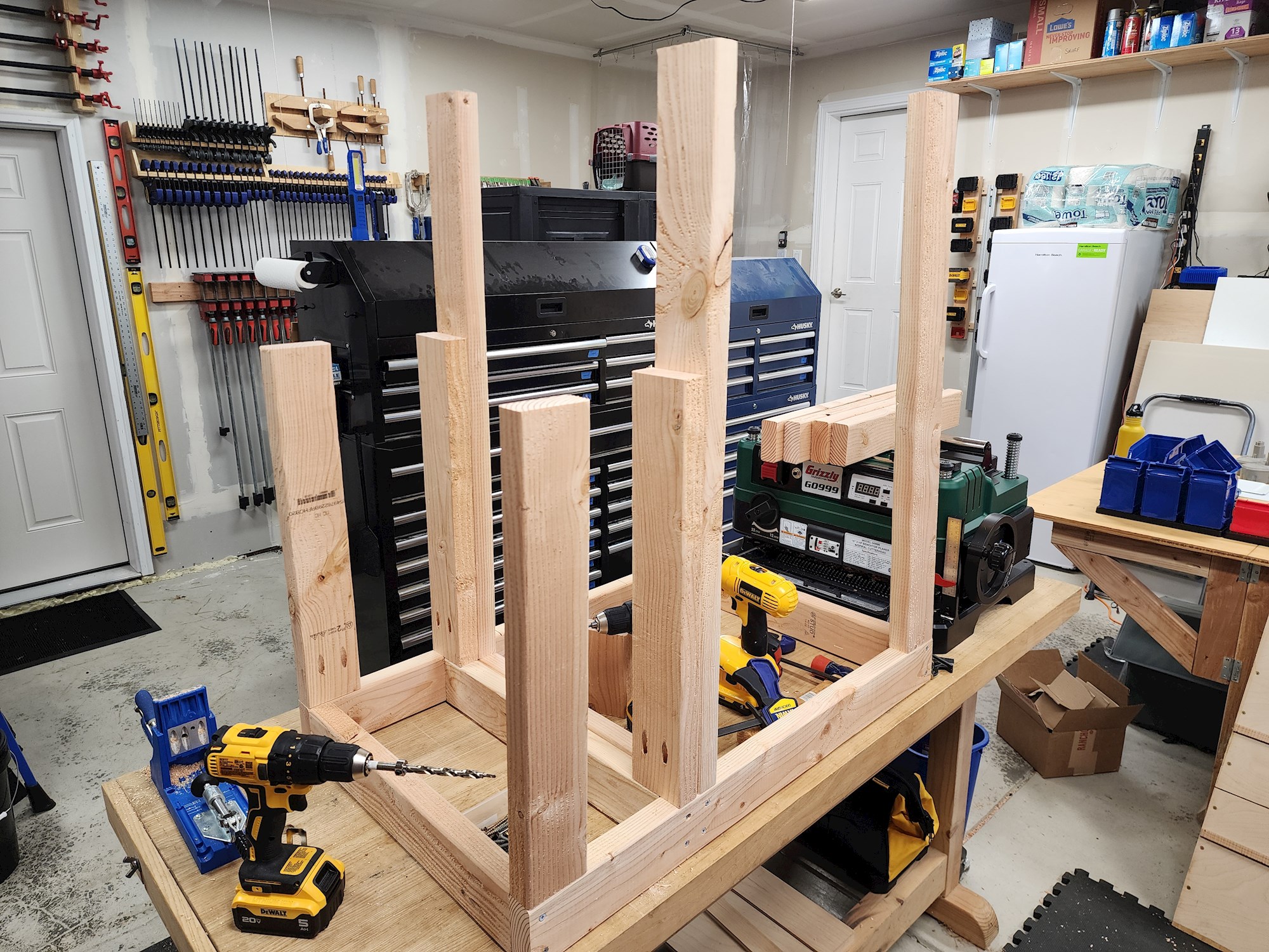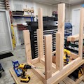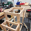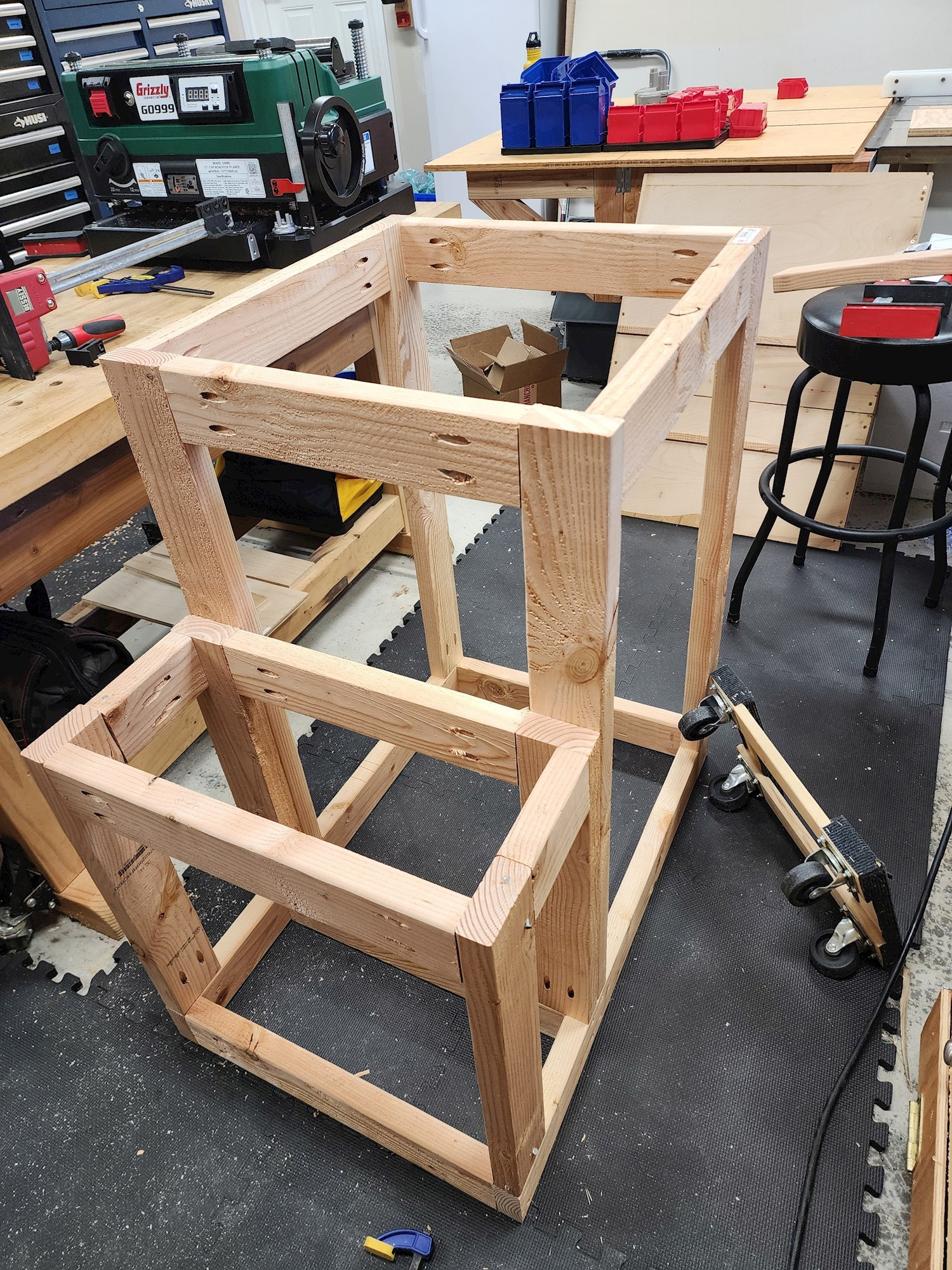 Made a much sturdier version out of plywood scraps and 2x4s, and purchased some retractable workbench casters to enable movement. The space below will be customized for additional tools down the road.