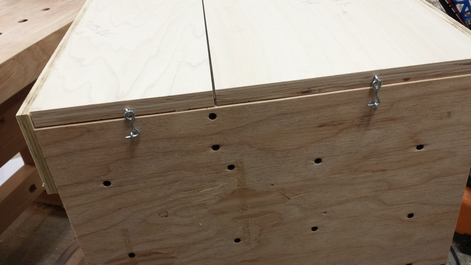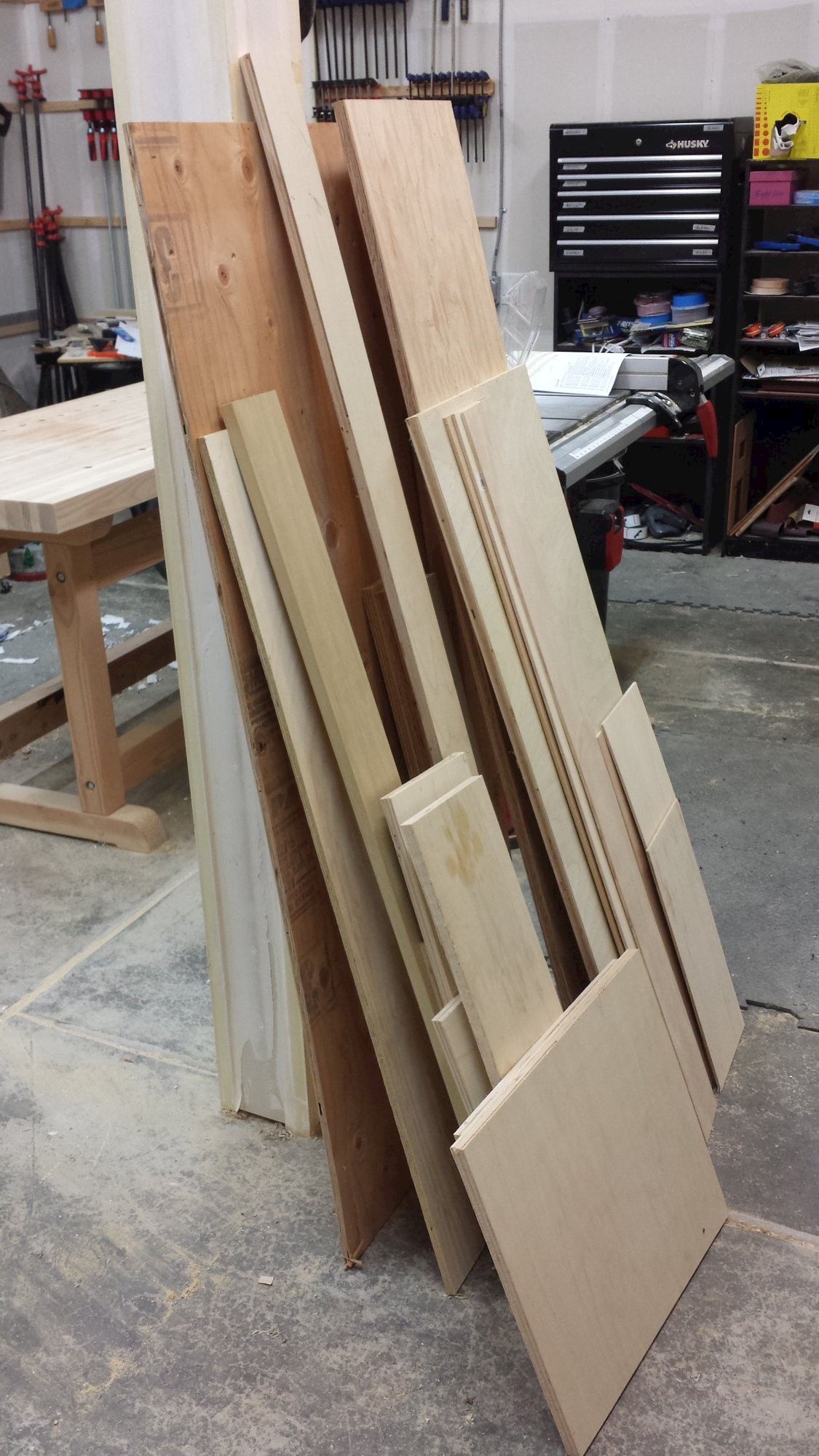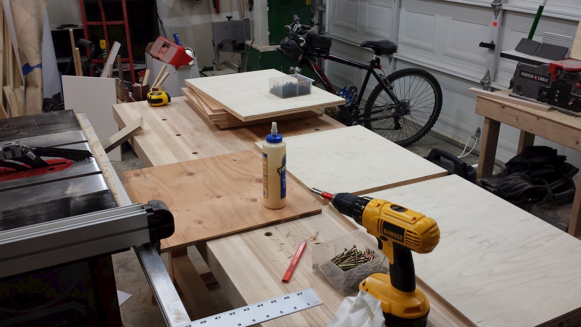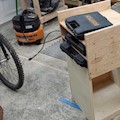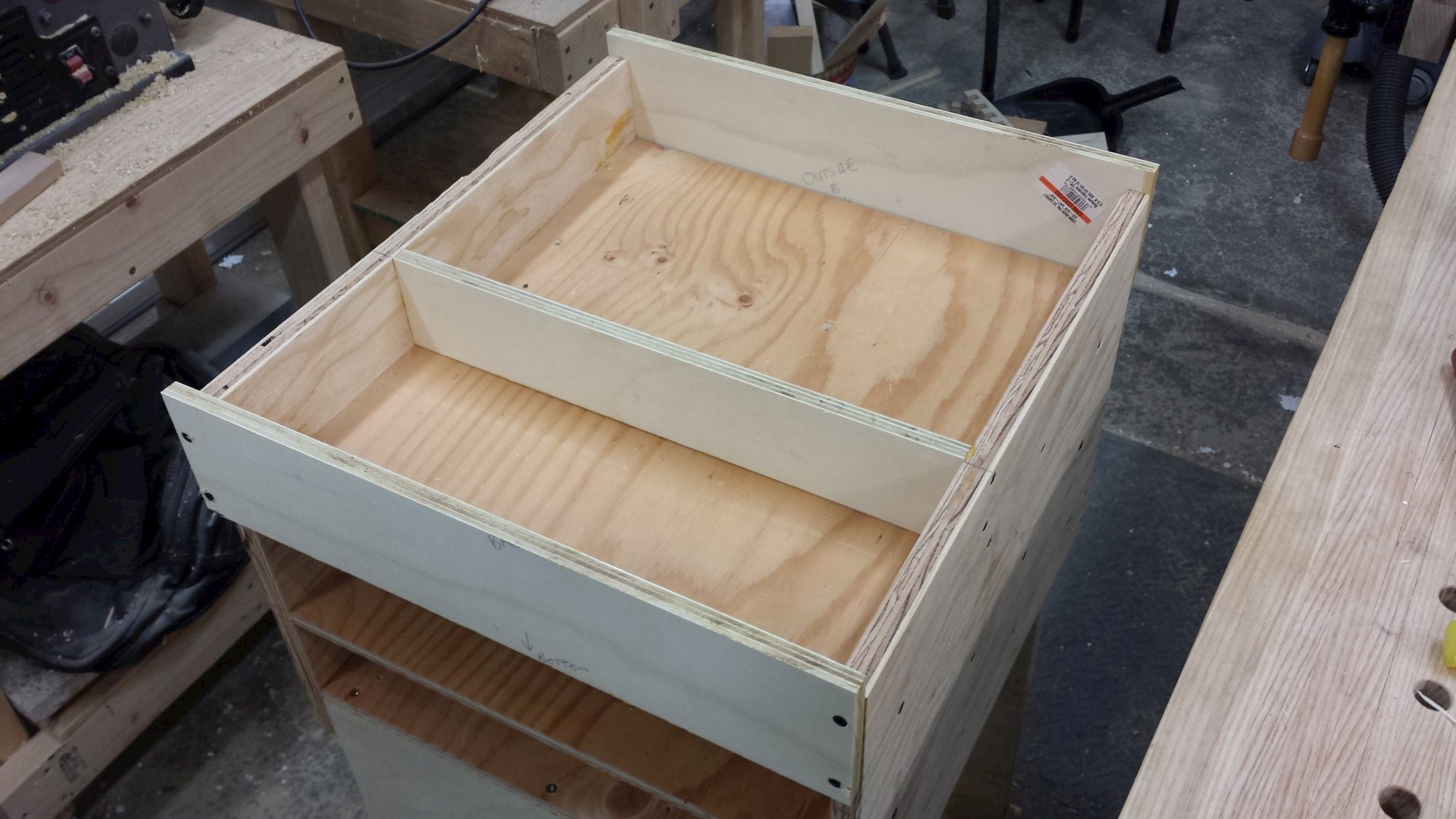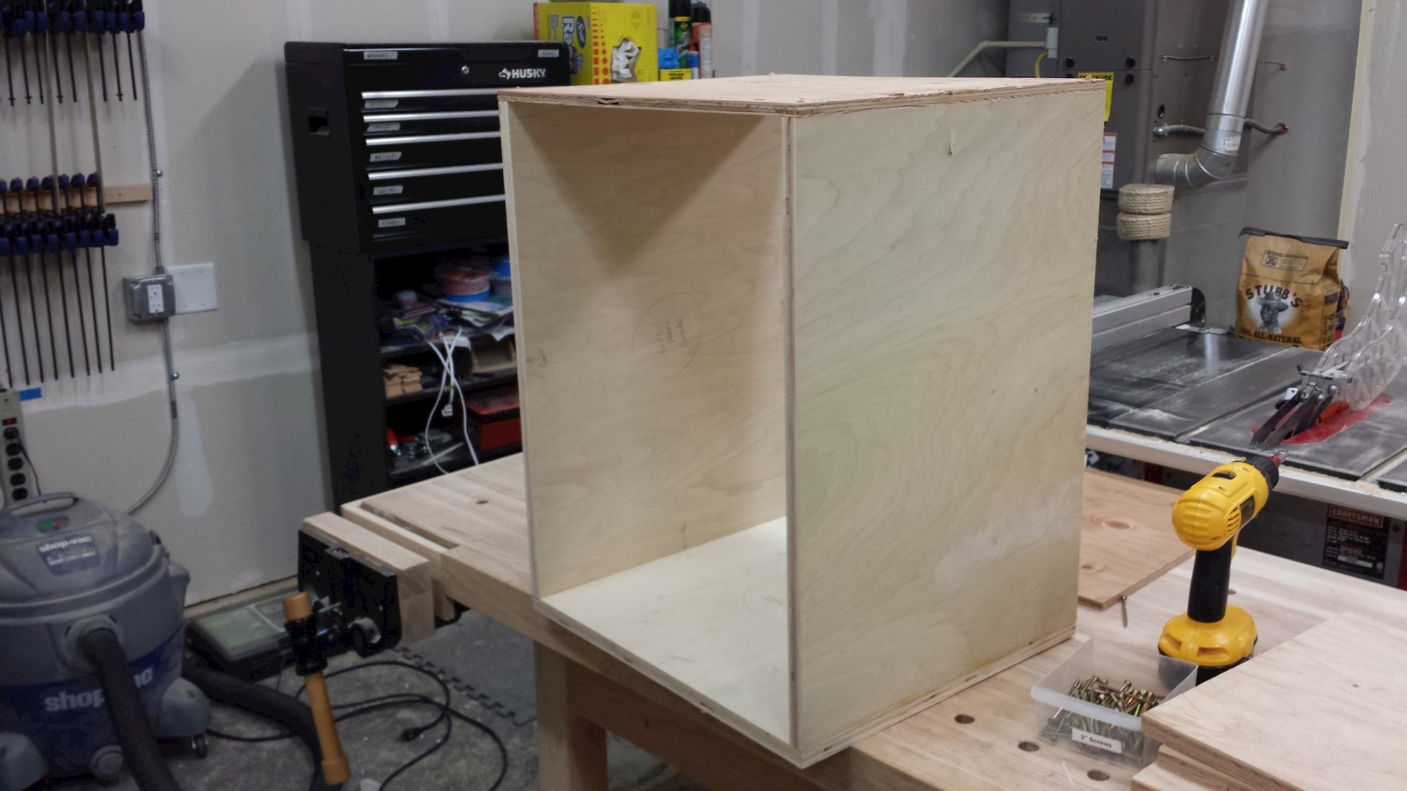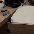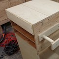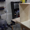 Cart to keep the compressor and its accessories all in once place. Plywood, dowels, and cabinet hardware.