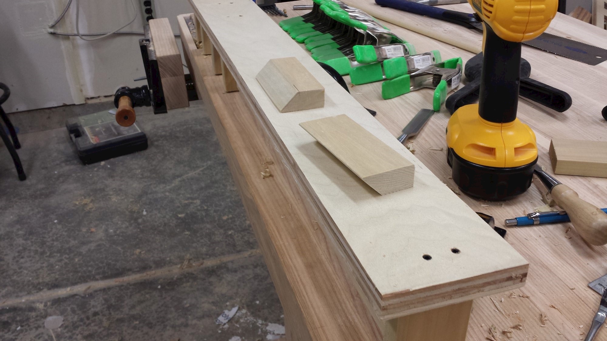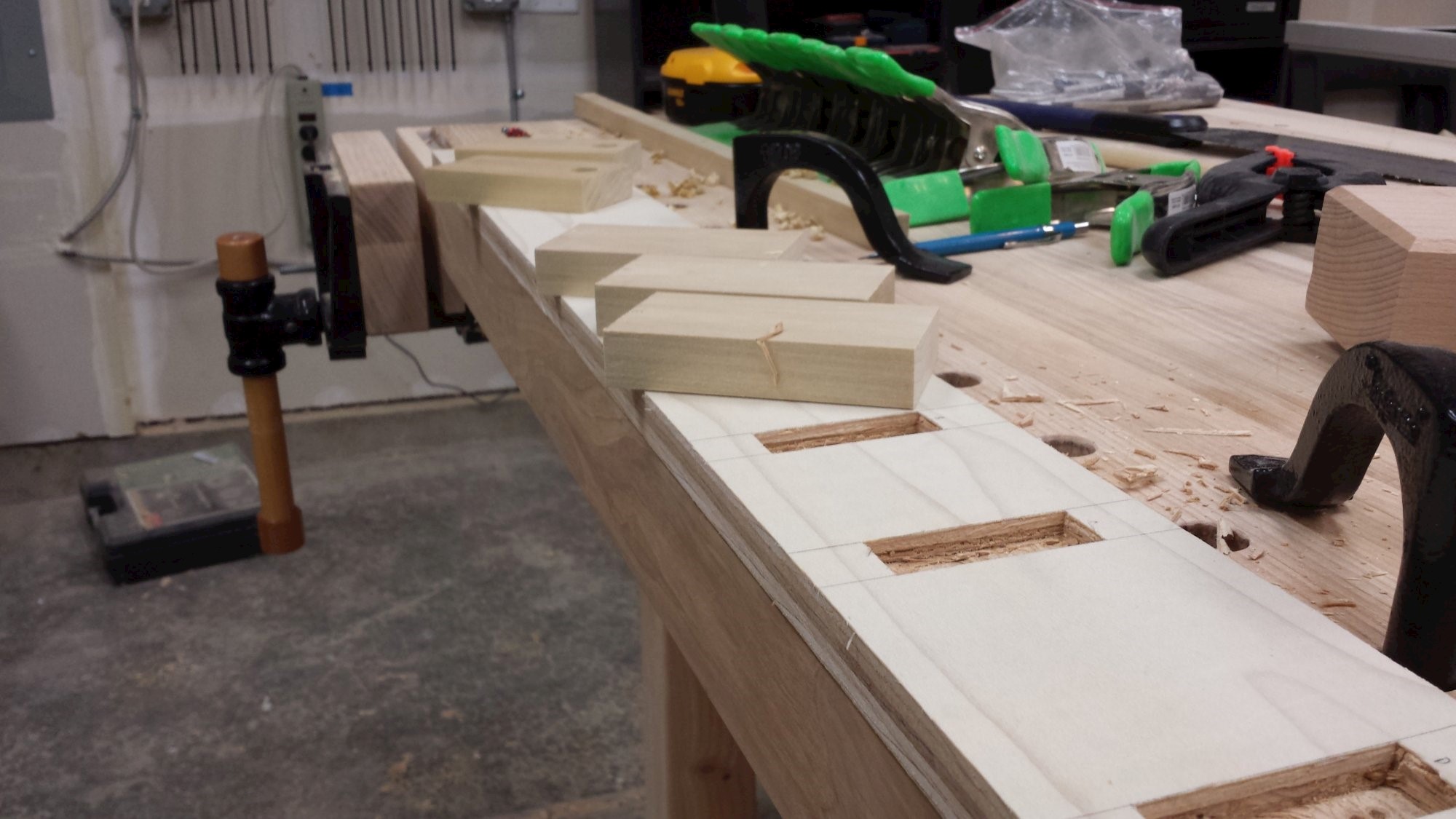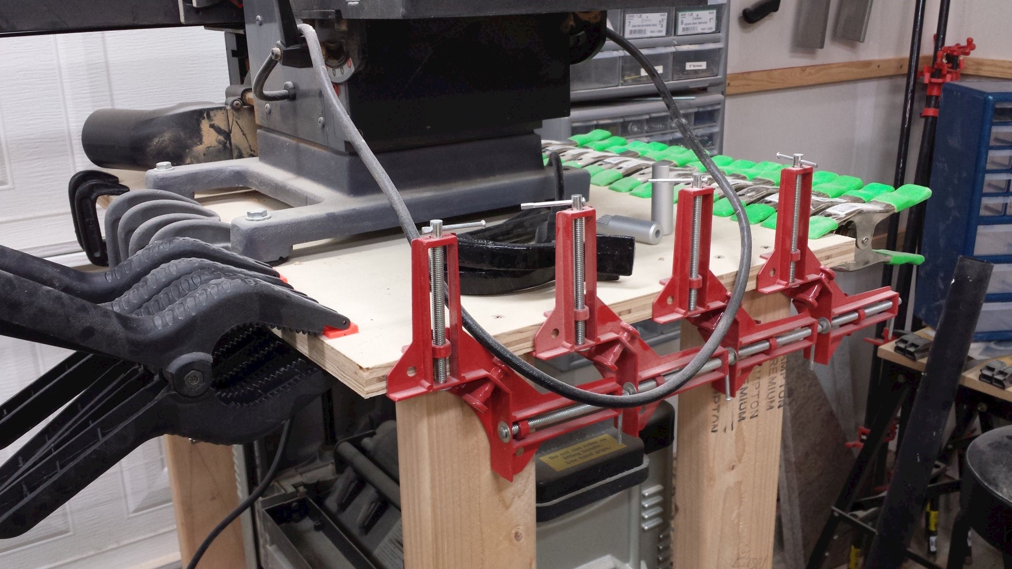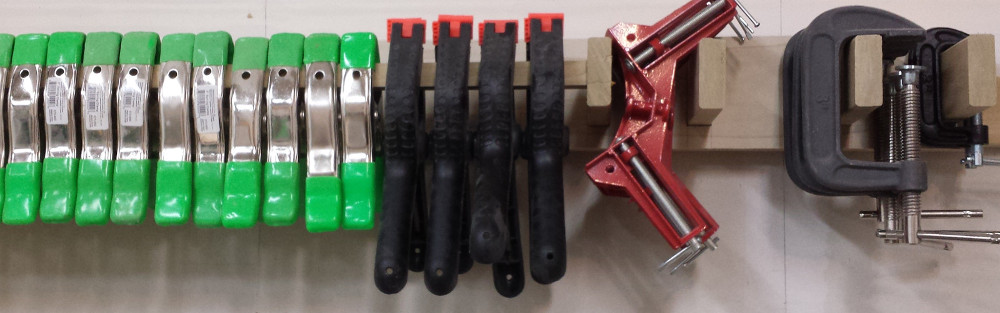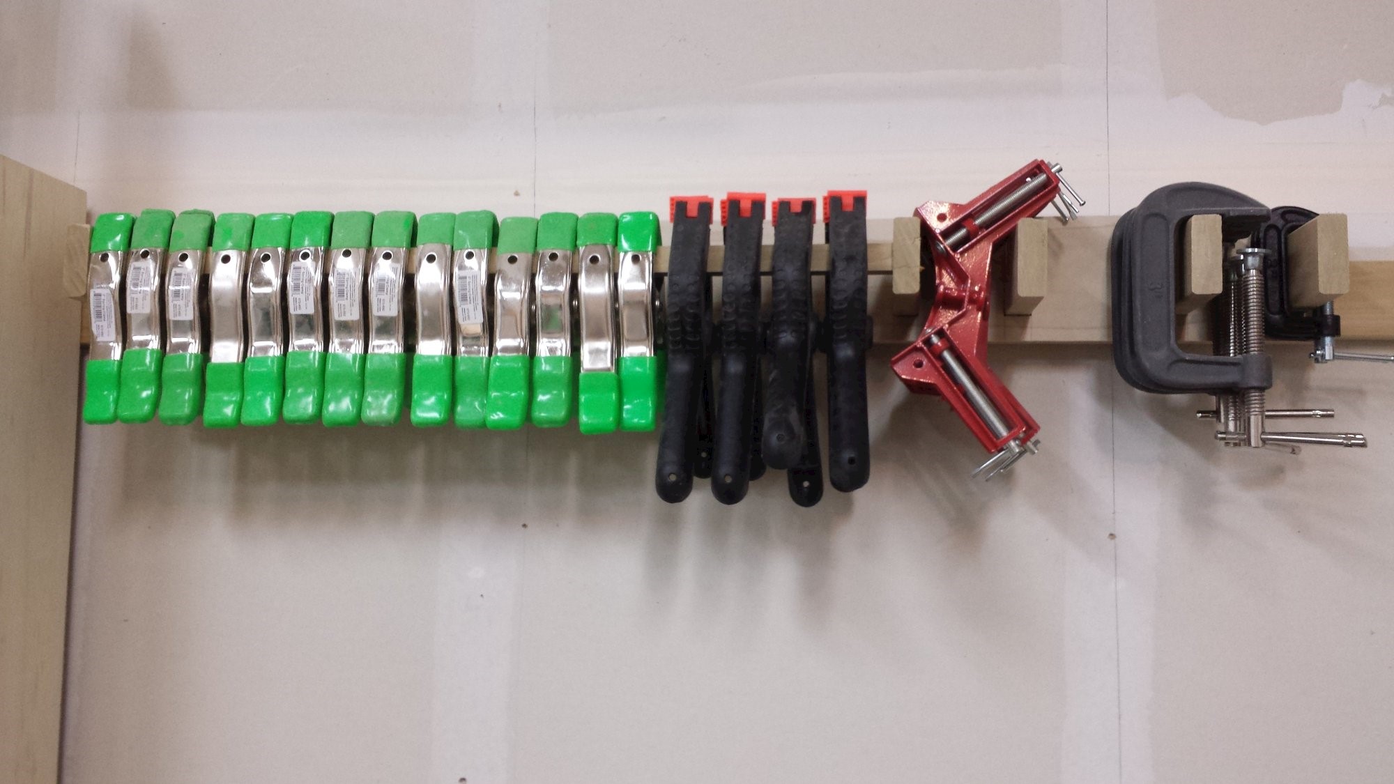 Wall rack for storing tons of small clamps. Plywood and poplar scraps.