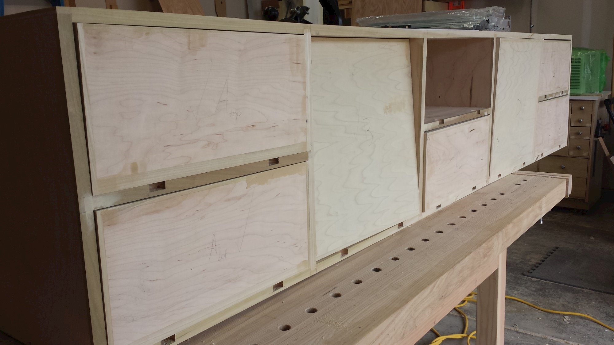 I struggled with this project for years. The unit is huge and unwieldy, and ended up slightly out of square. I also made an odd decision to let the doors open vertically rather than horizontally. A bunch of non-traditional choices like this as well as a number of finishing problems led to a lot of motivational issues.
