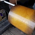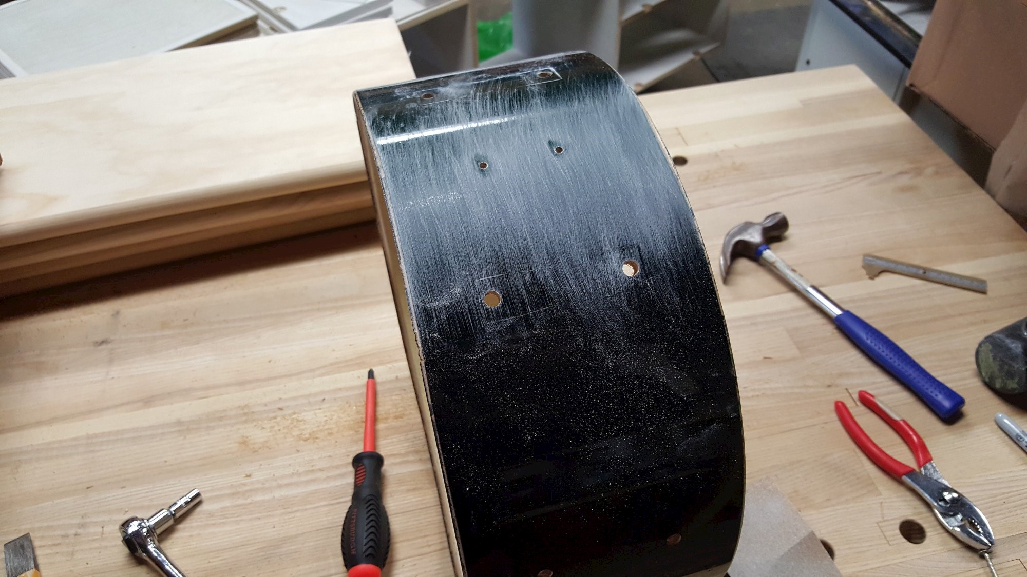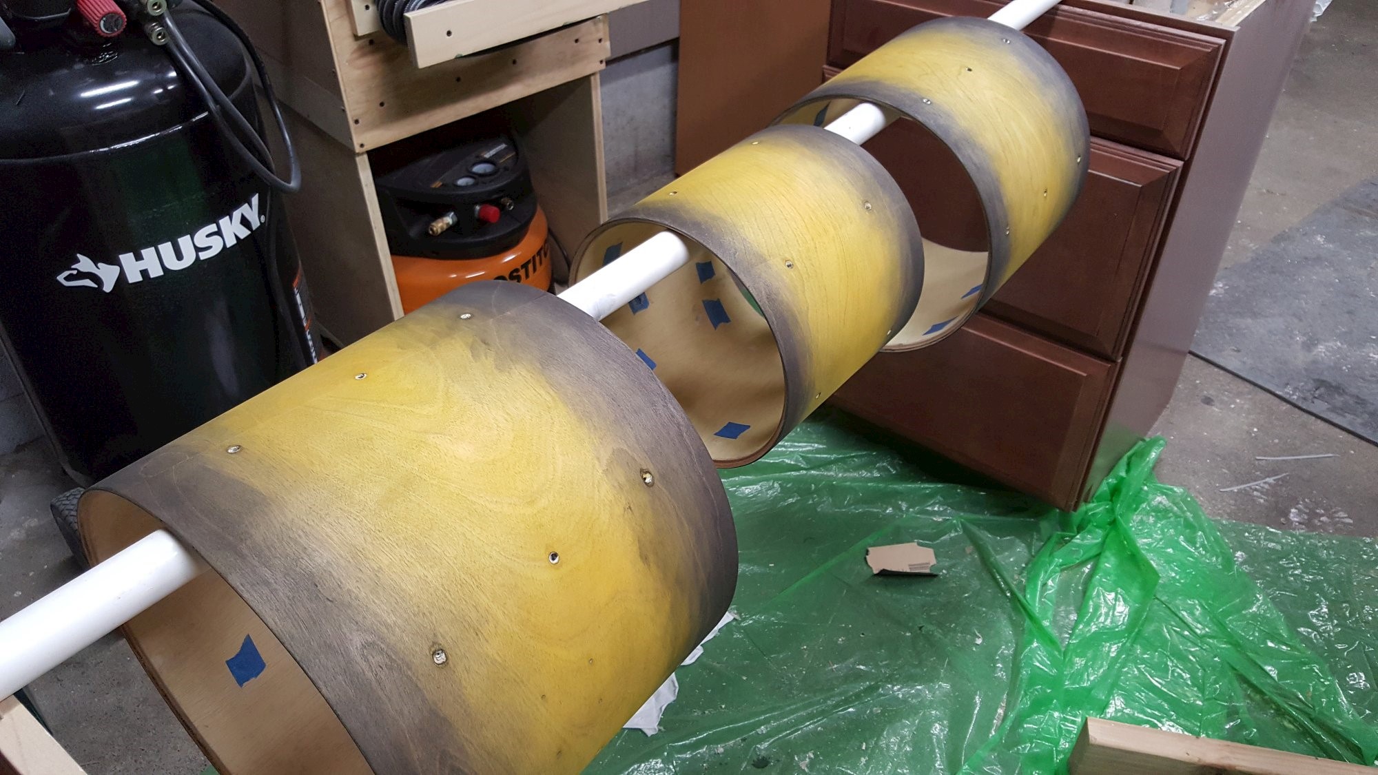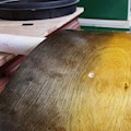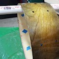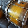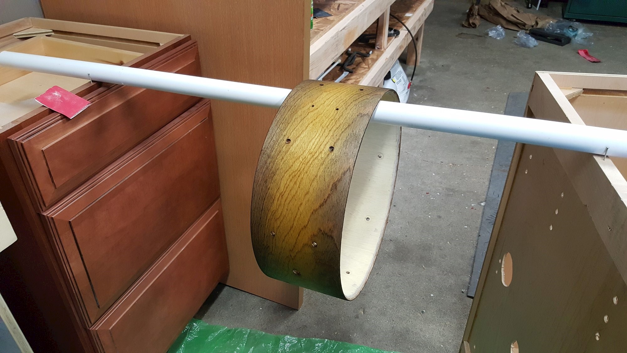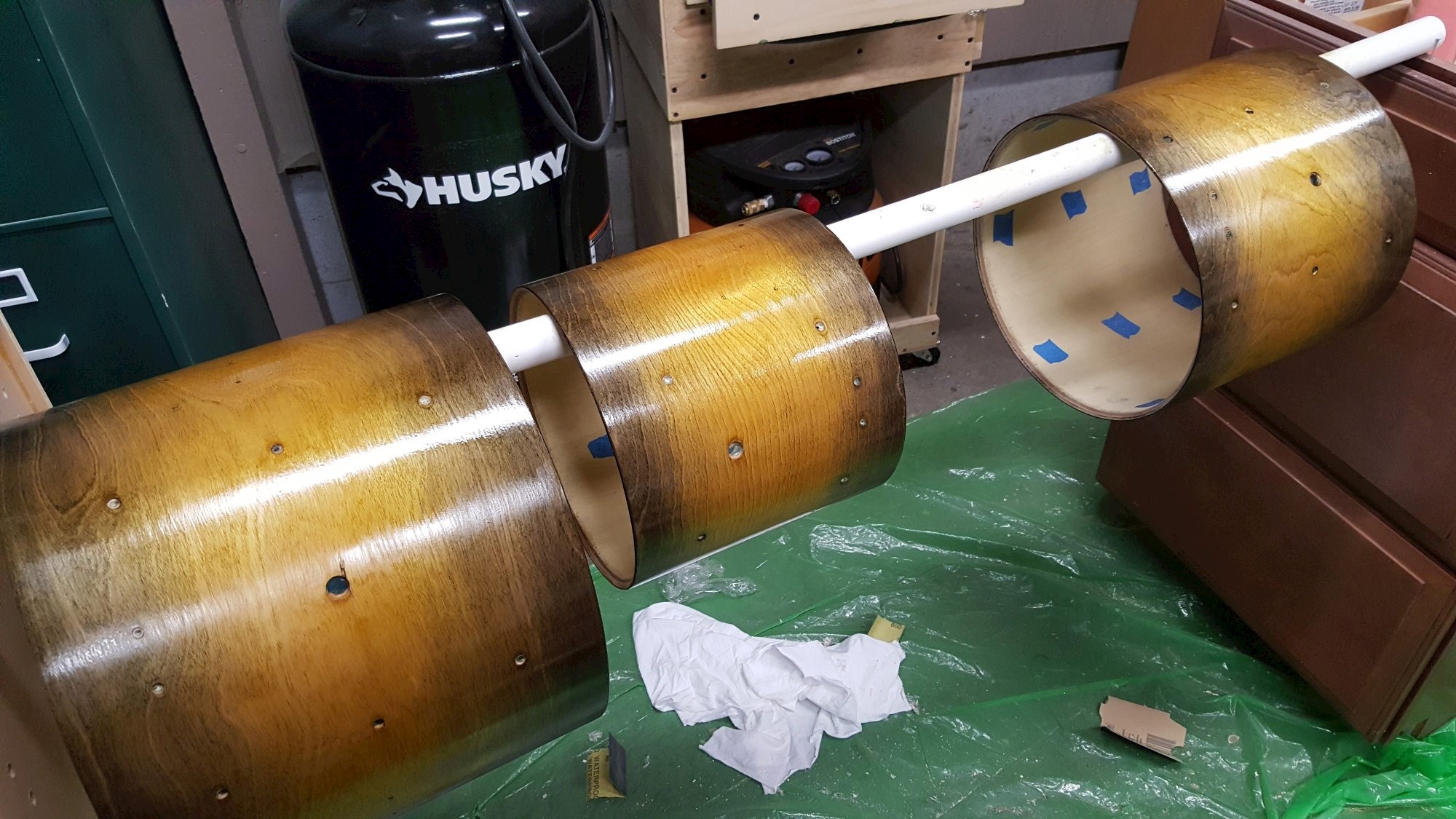 15-year-old Yamaha Stage Custom Advantage stripped, dyed with an amber and black burst, and finished with lacquer.