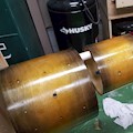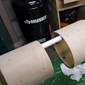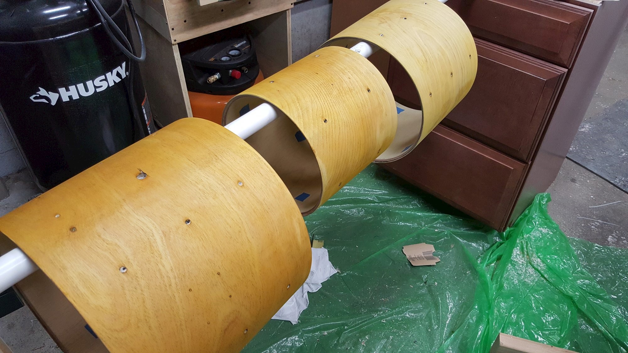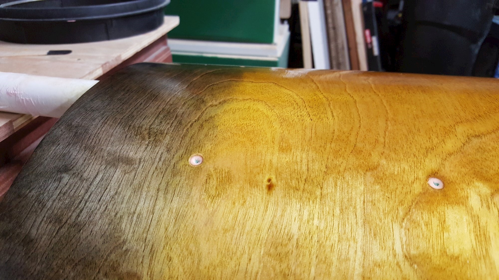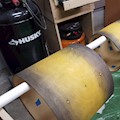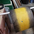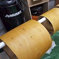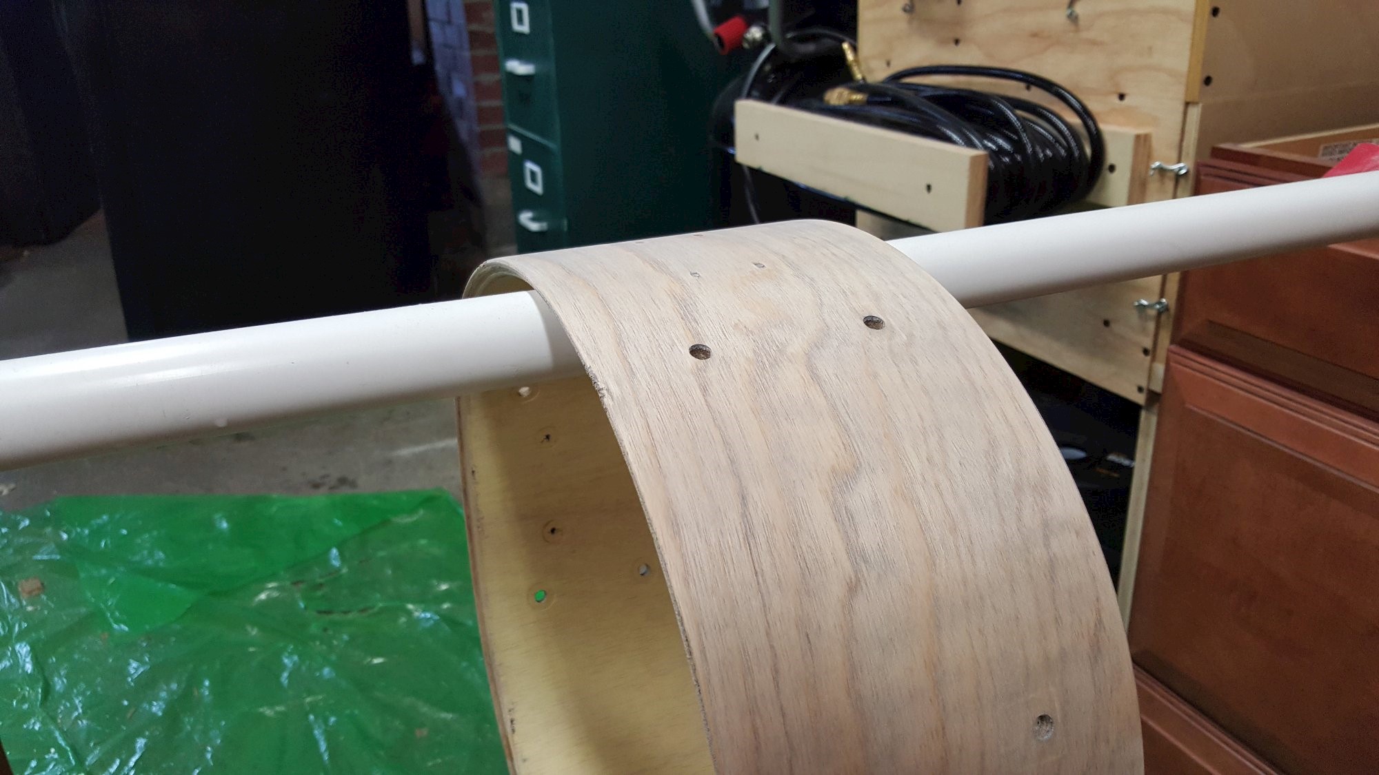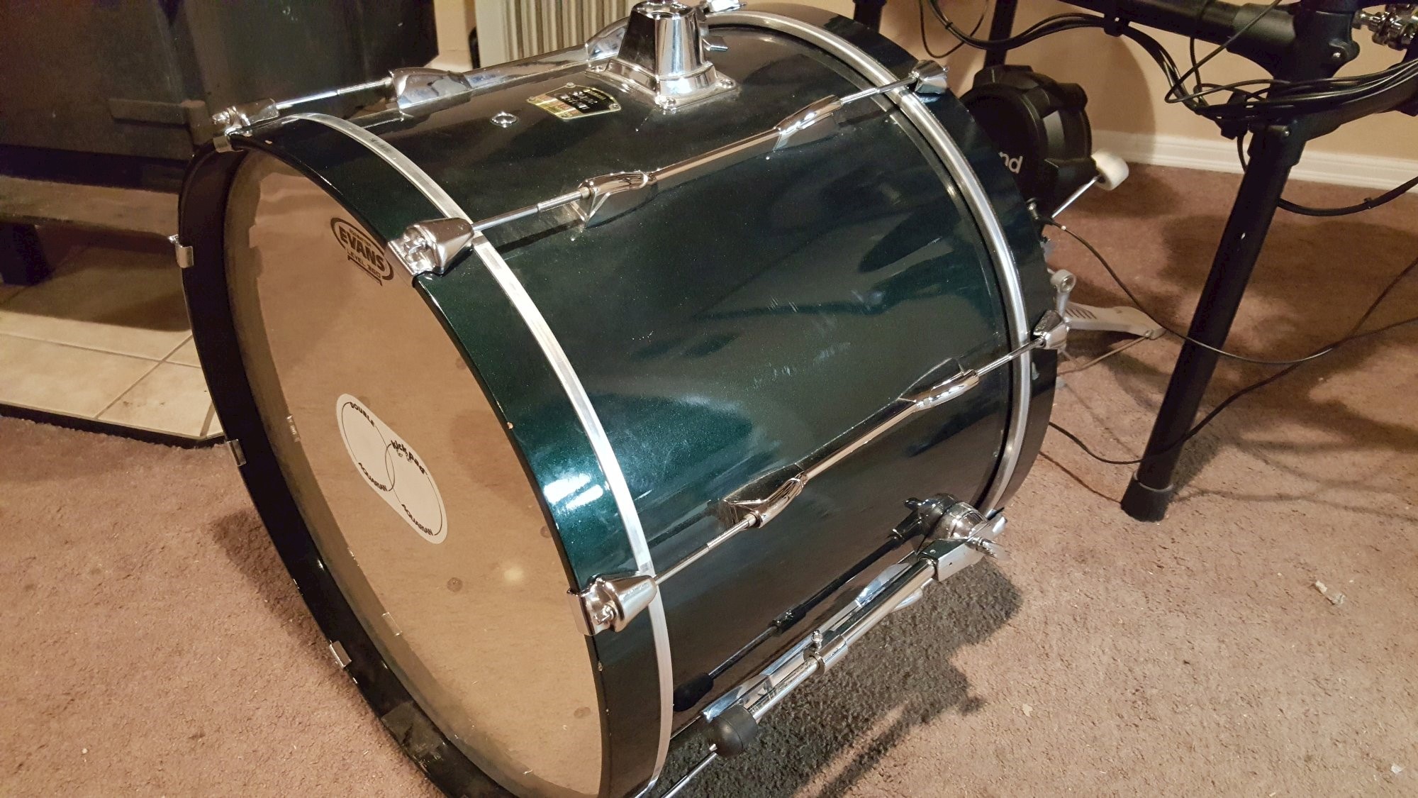 15-year-old Yamaha Stage Custom Advantage stripped, dyed with an amber and black burst, and finished with lacquer.