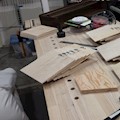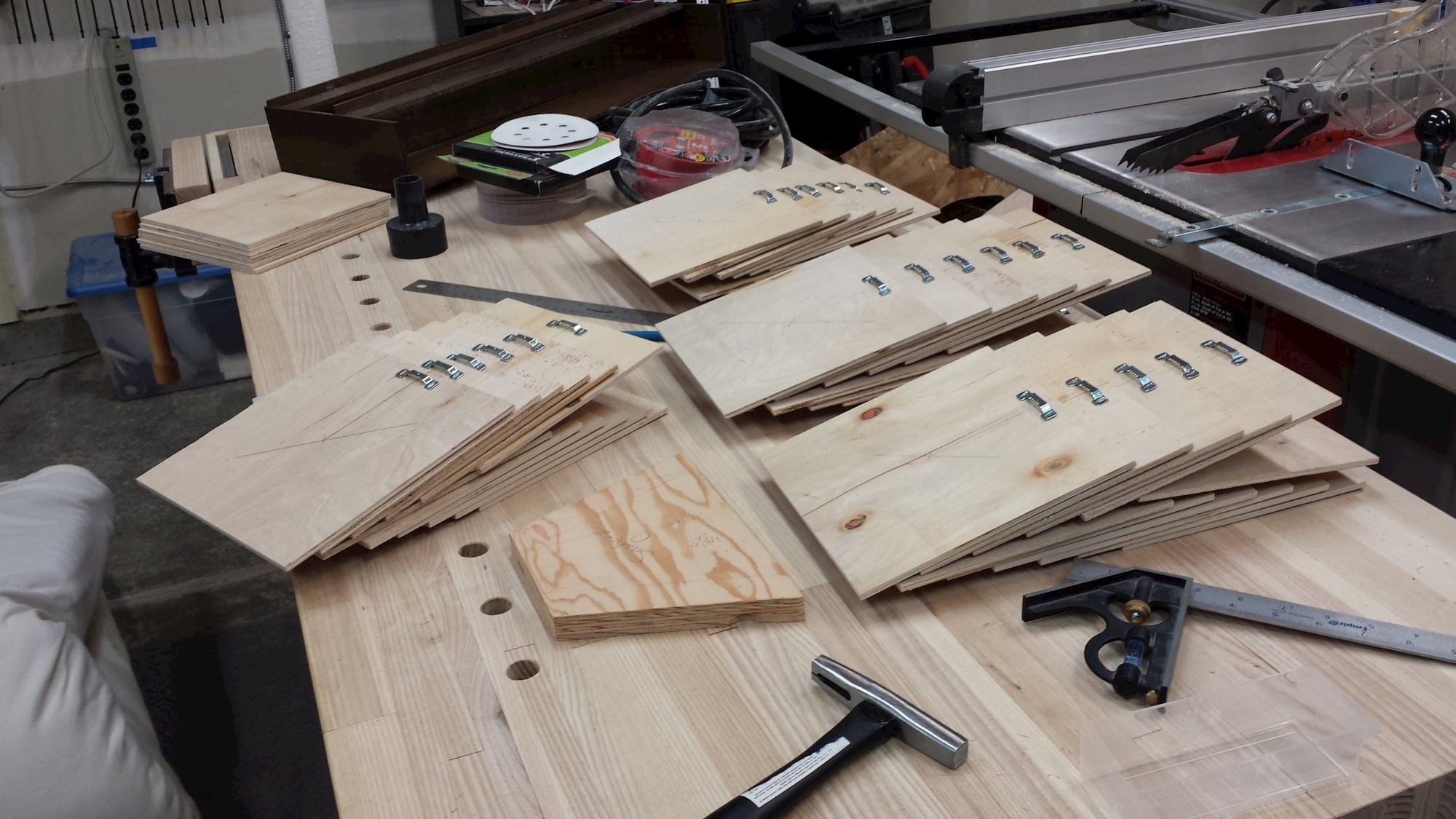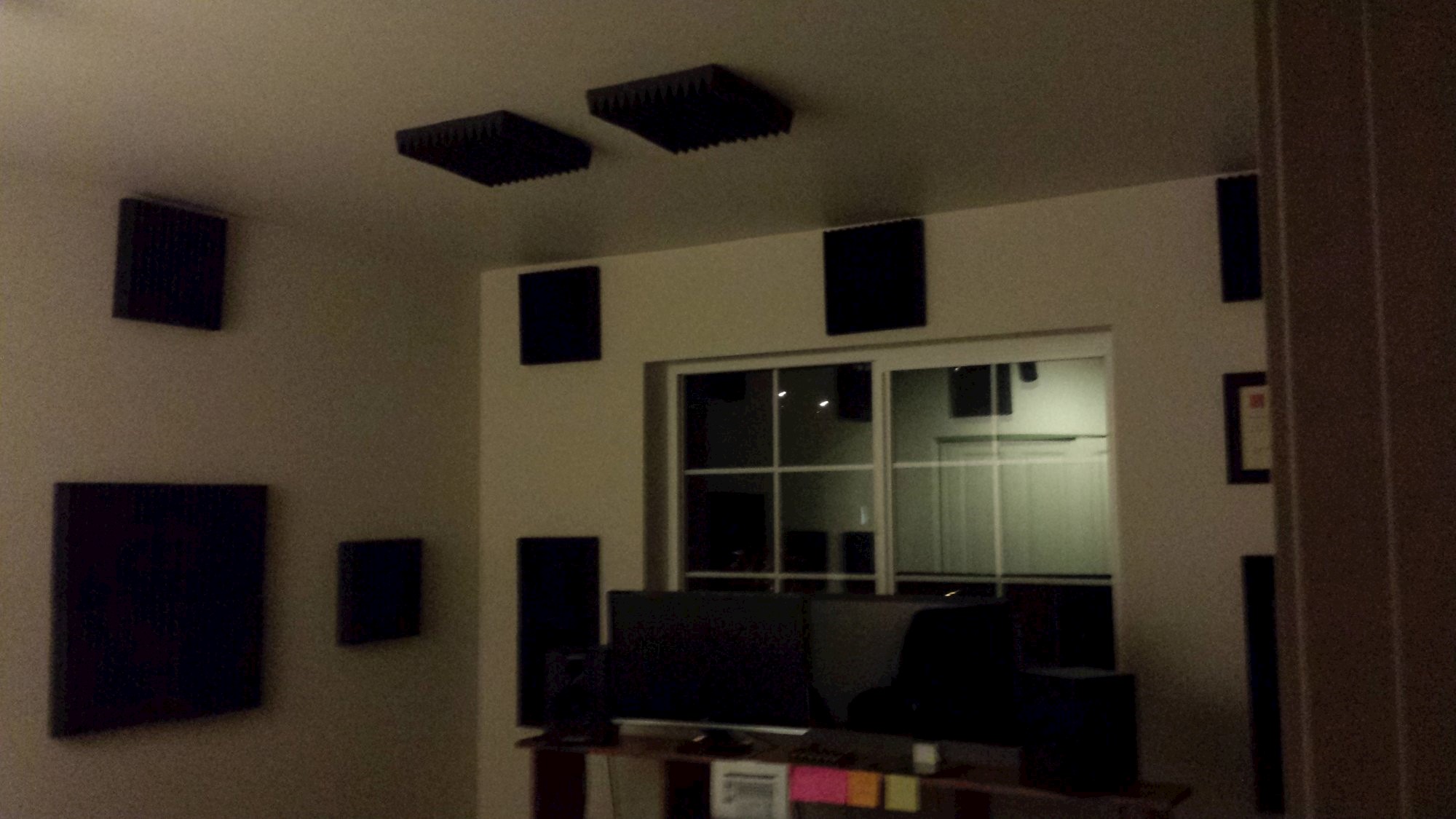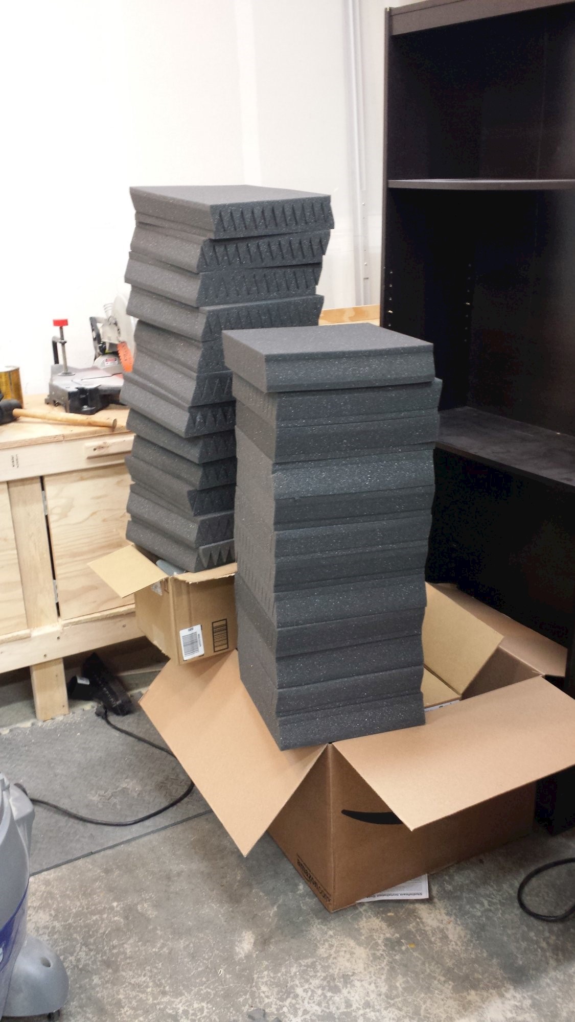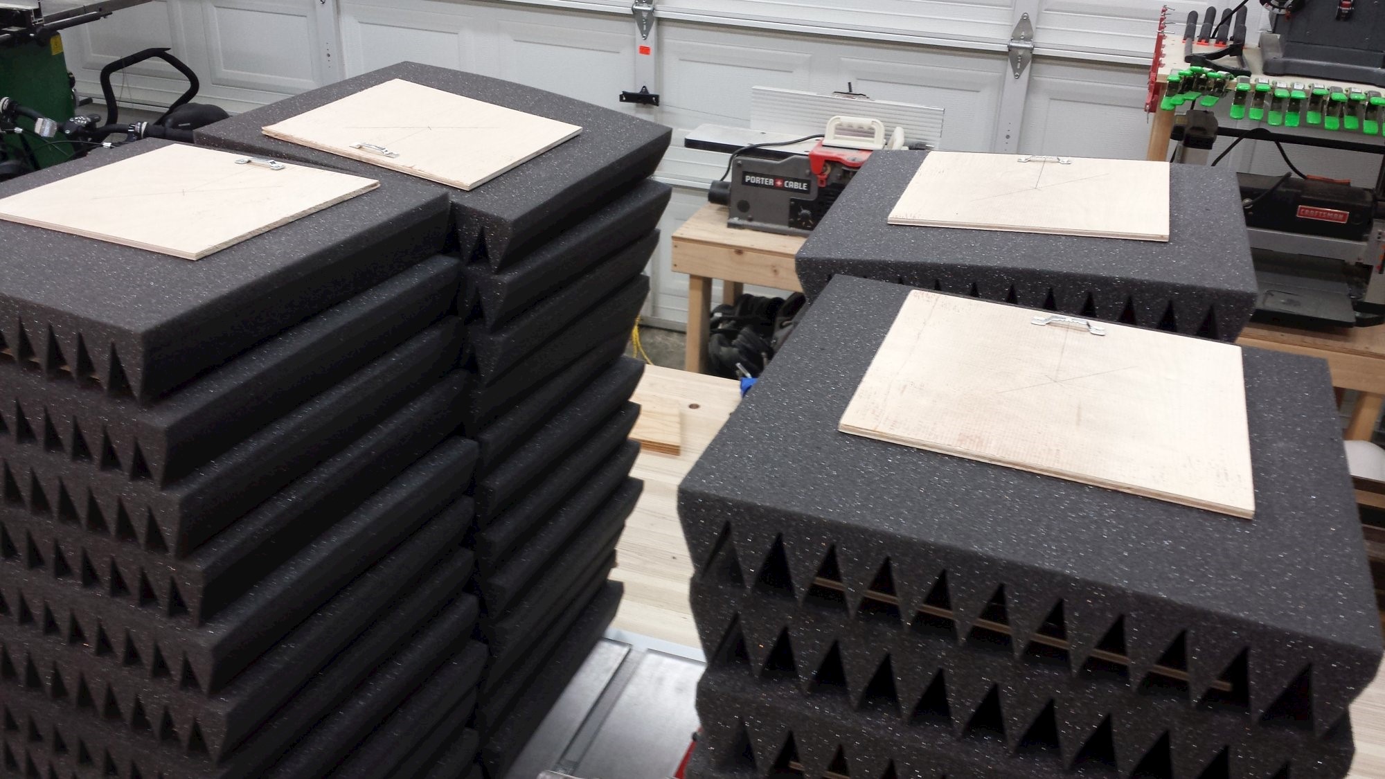 Boards glued to acoustic foam to make rearranging it simpler and less damaging. 1/8" sanded plywood and acoustic foam glue.