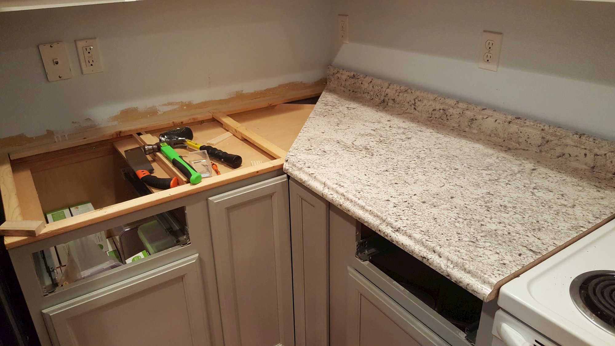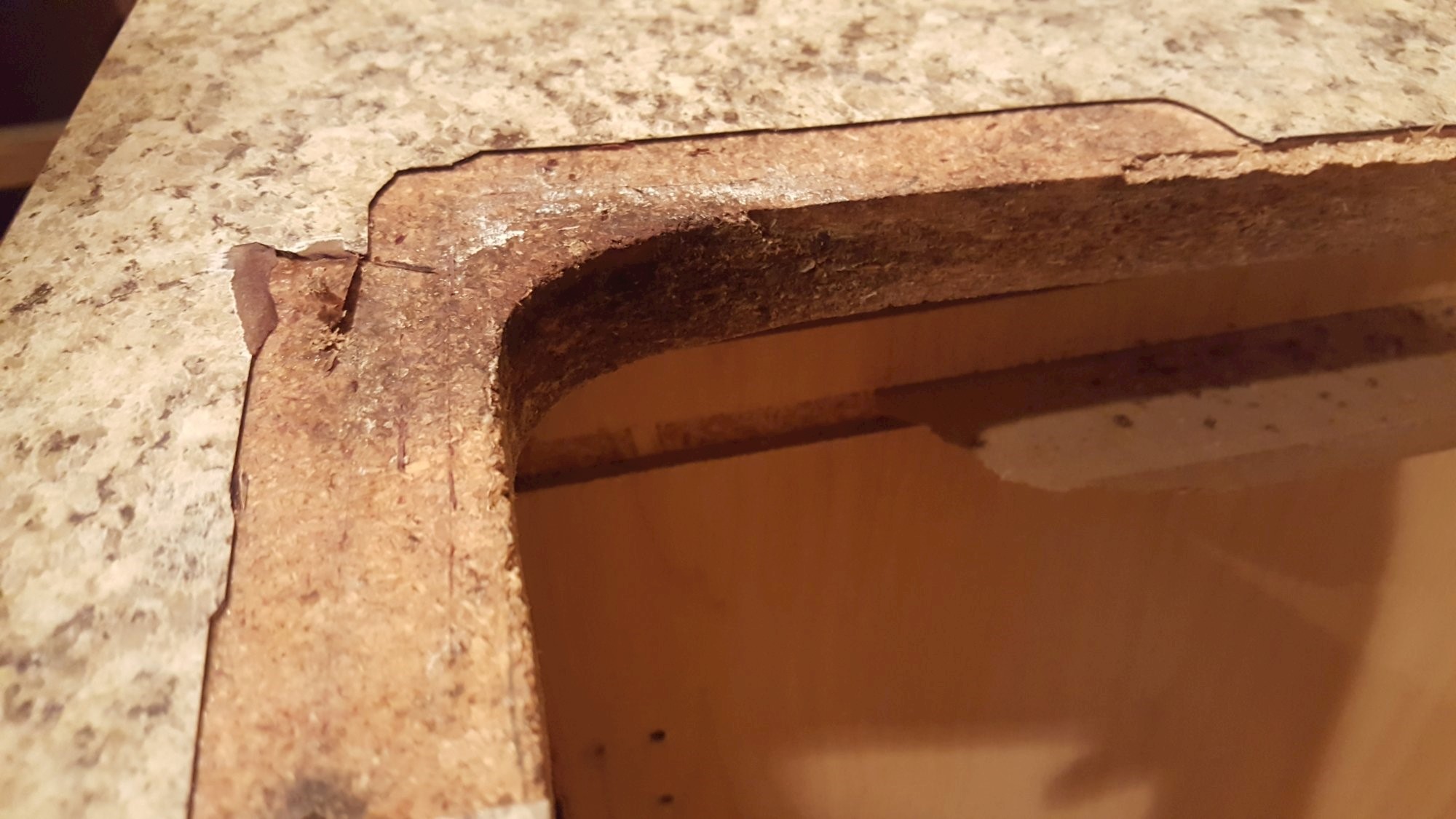 While installing the new sink, I found mold throughout the underside of the countertops. I thought it might be a good idea to replace those too, while I was at it.