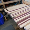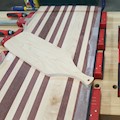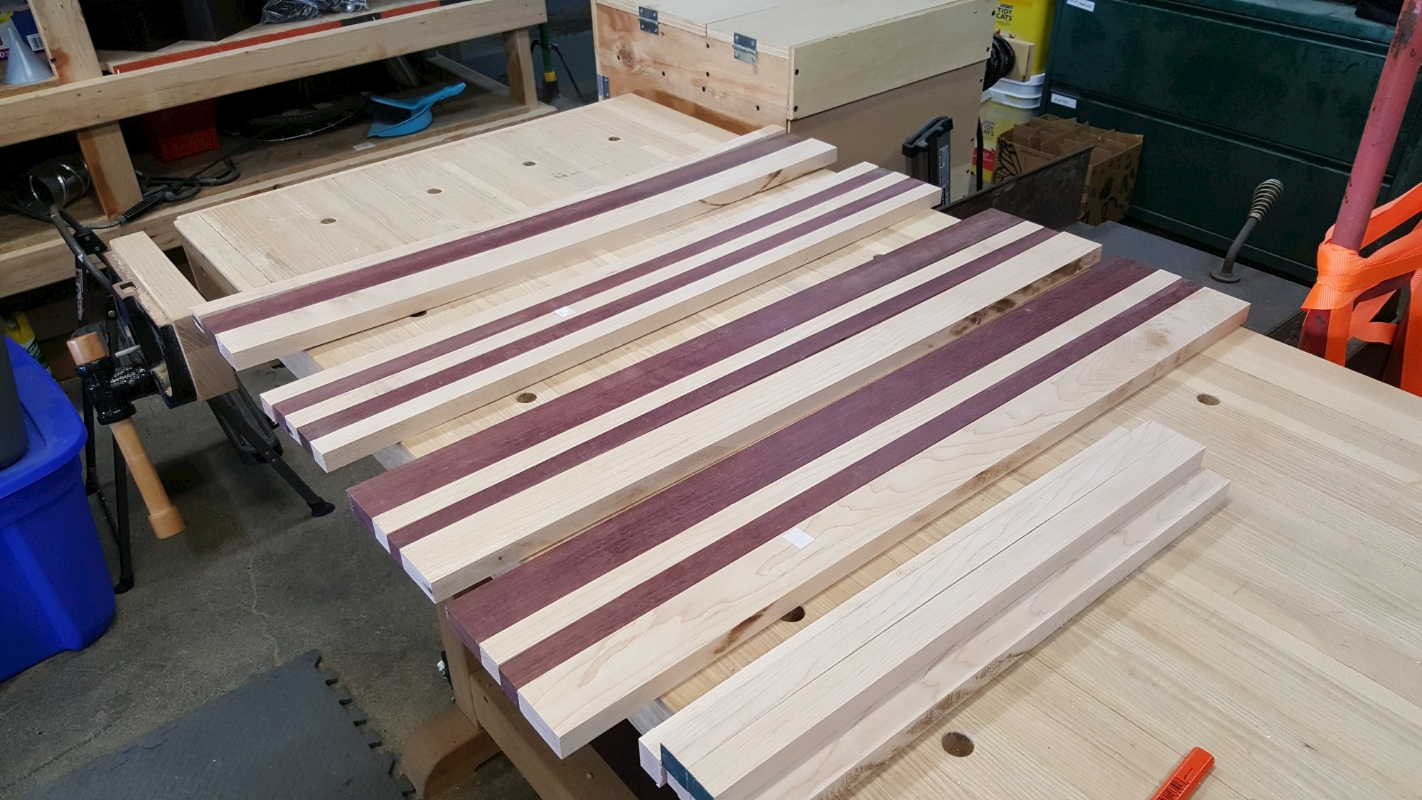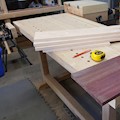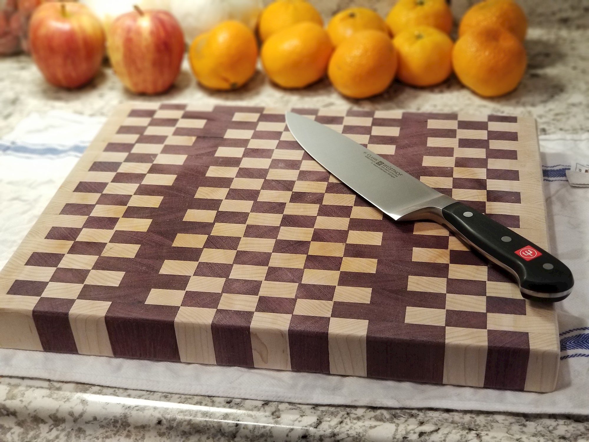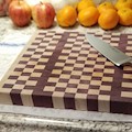 Got sick of the plastic cutting boards that warp in the dishwasher. Decided to make some new wooden ones, just a touch fancier than my previous efforts.