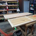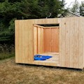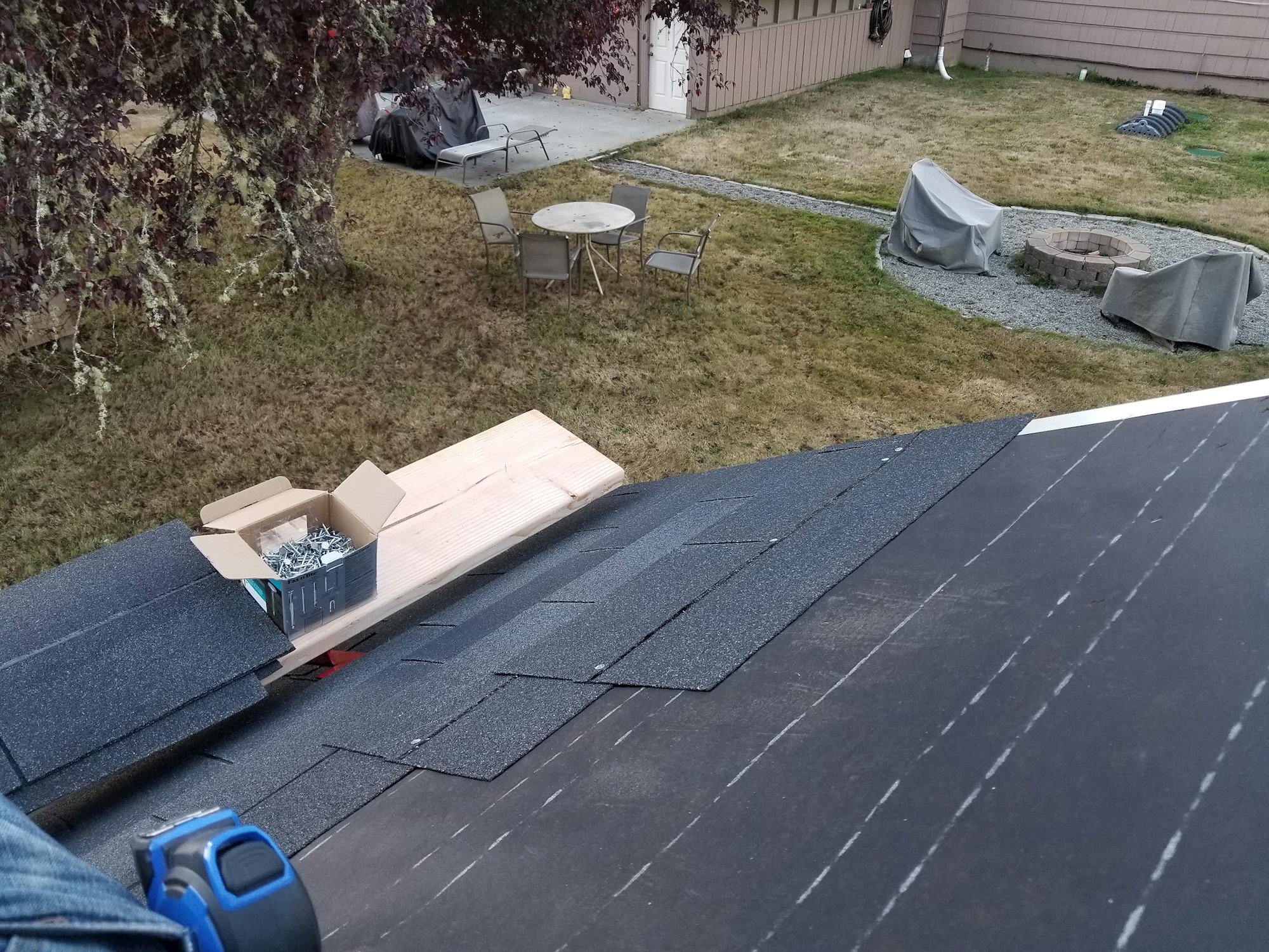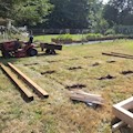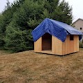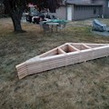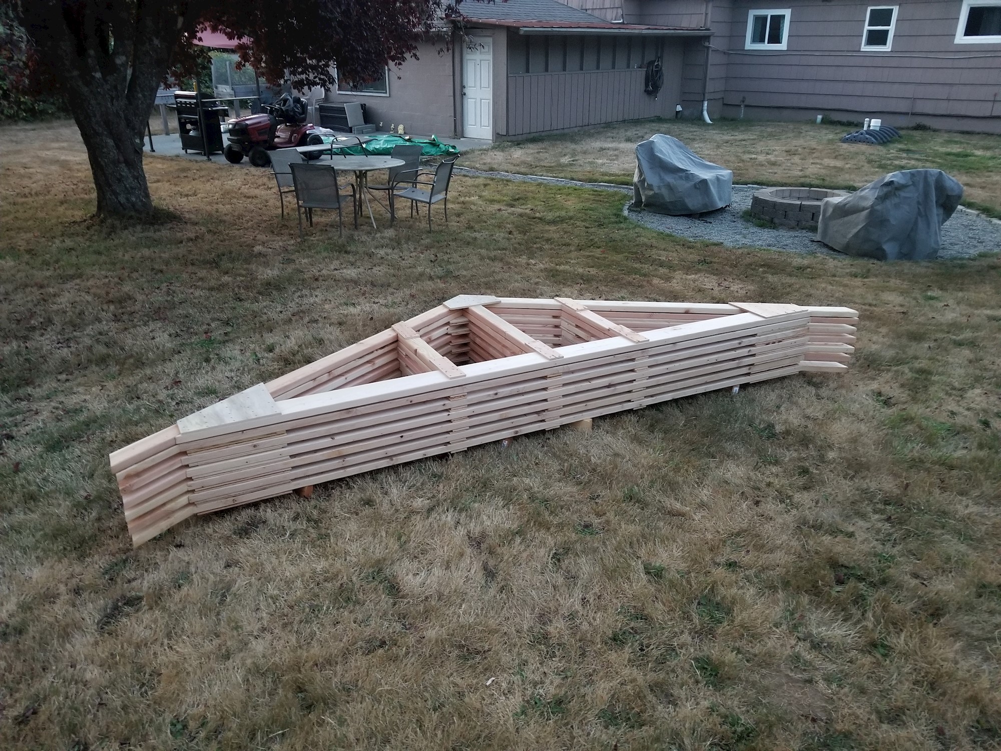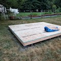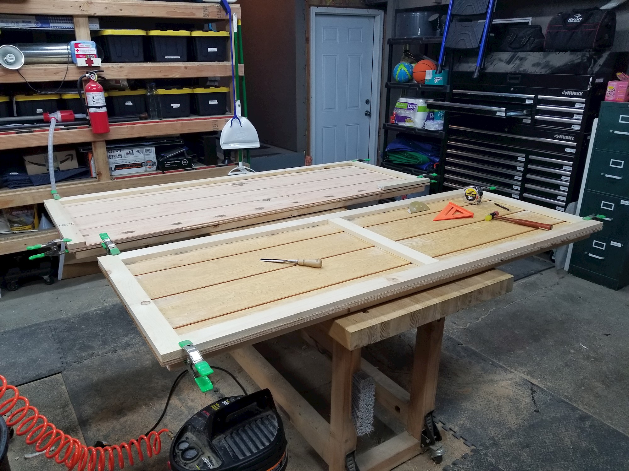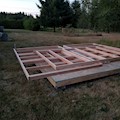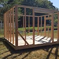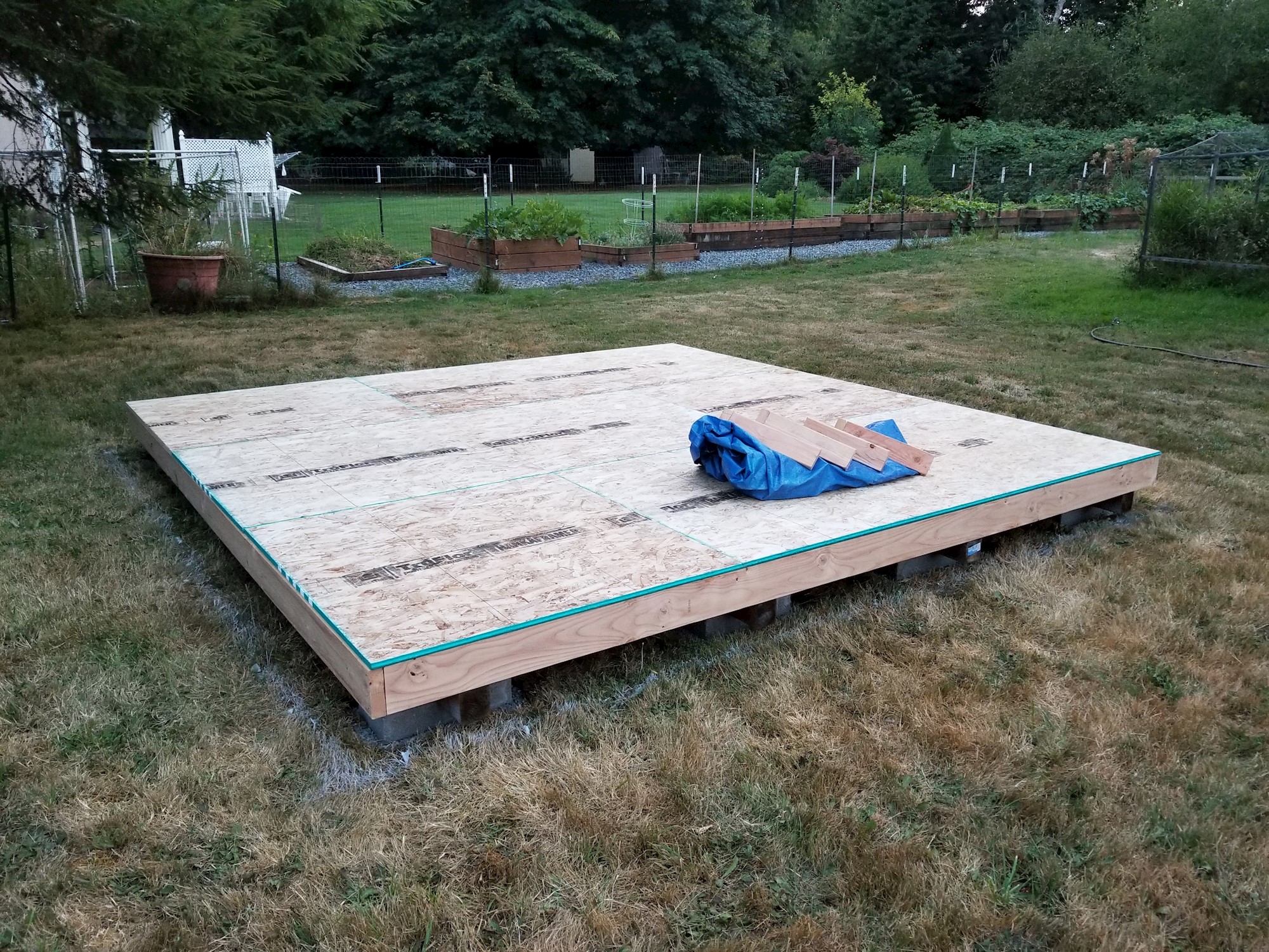 Made massive progress in the first three weeks, and then fall came early. Then it was a matter of waiting days for the rain to abate long enough to get the remaining week-ish of work done, a couple hours at a time. Finally put doors on the thing about 2 months after starting.