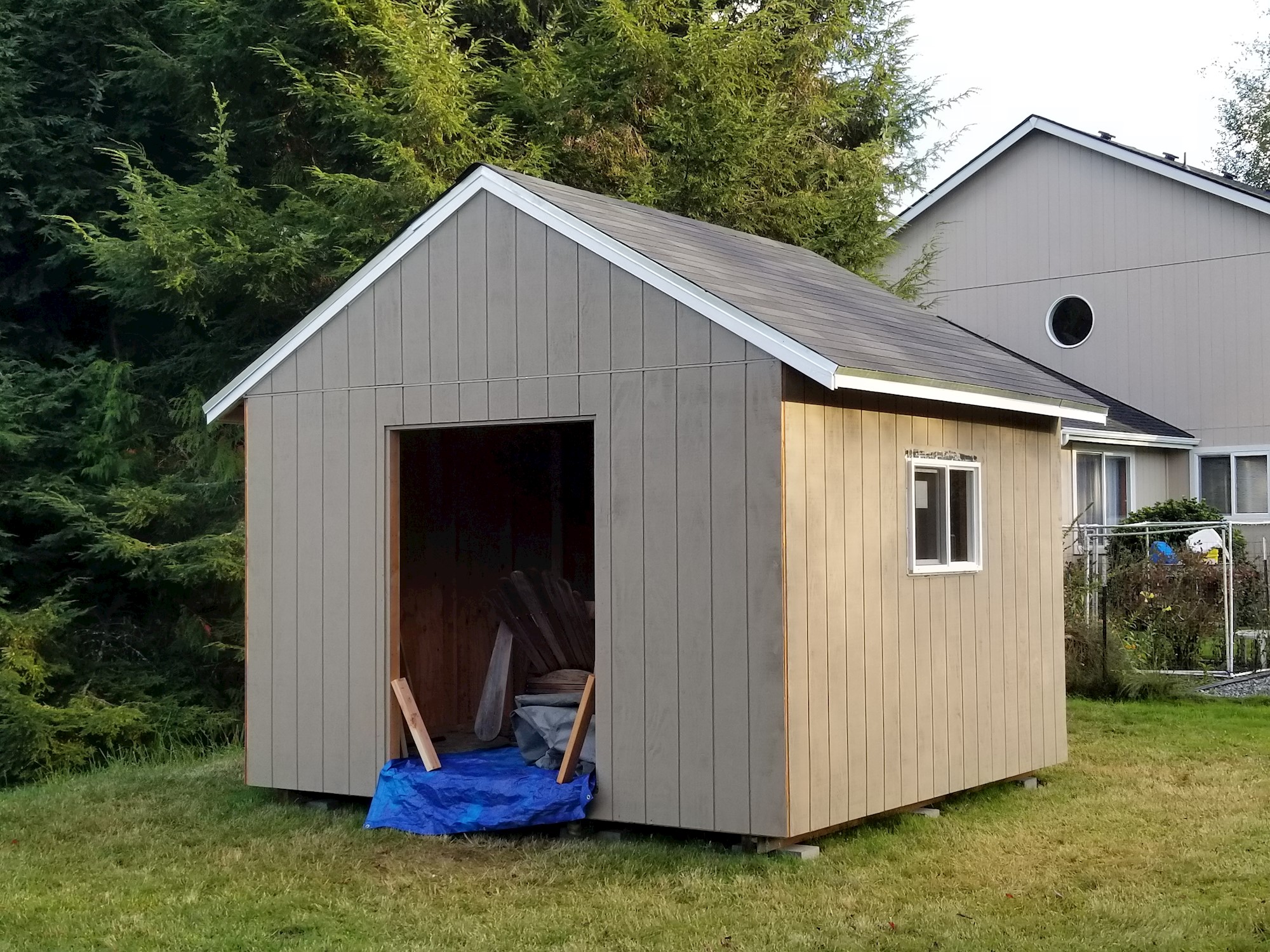 12x12 storage shed for my large lawn equipment and various outdoor items. The goal was to de-clutter my breezeway, garage, and back patio.