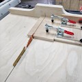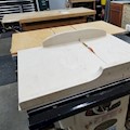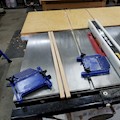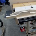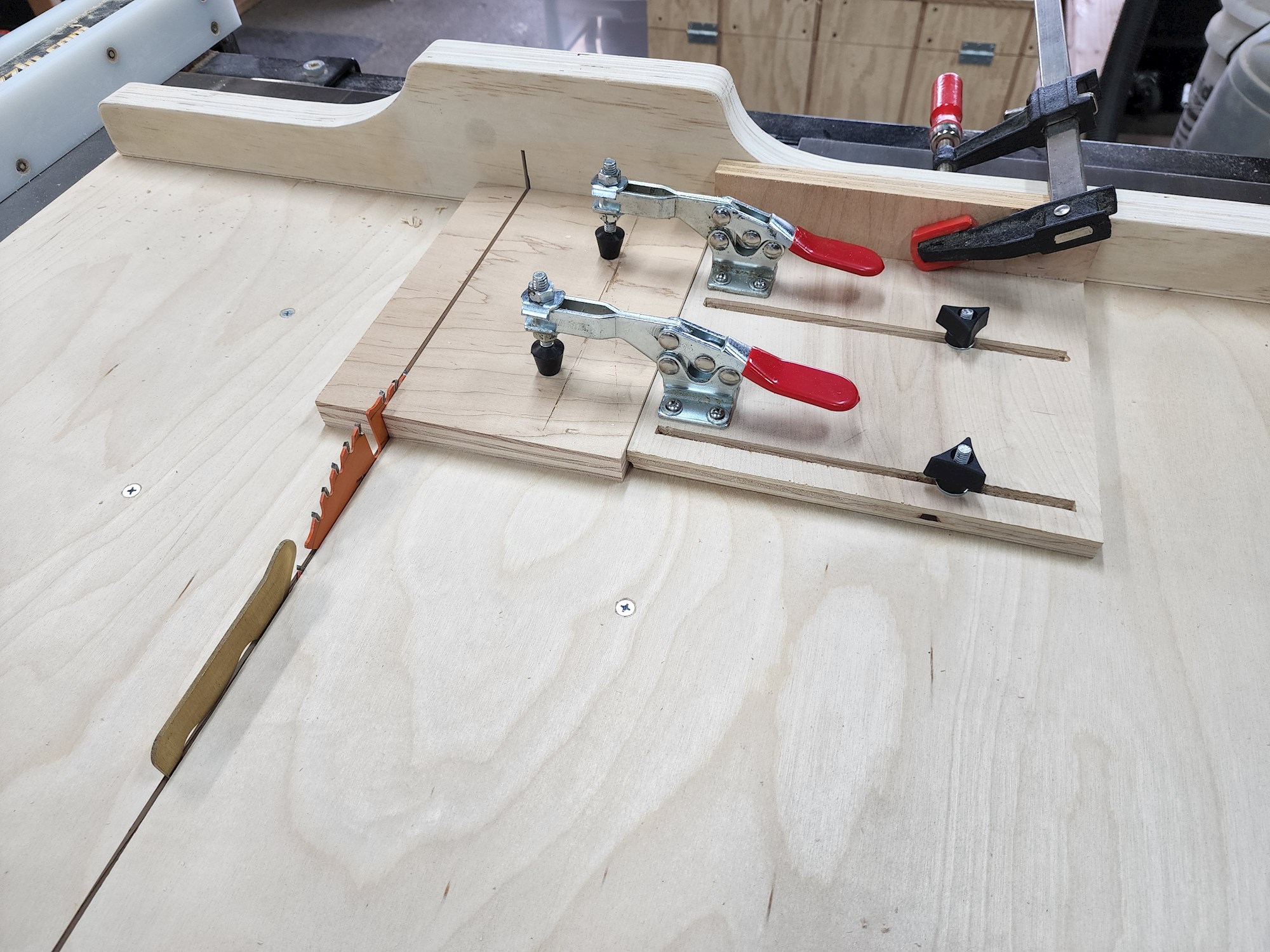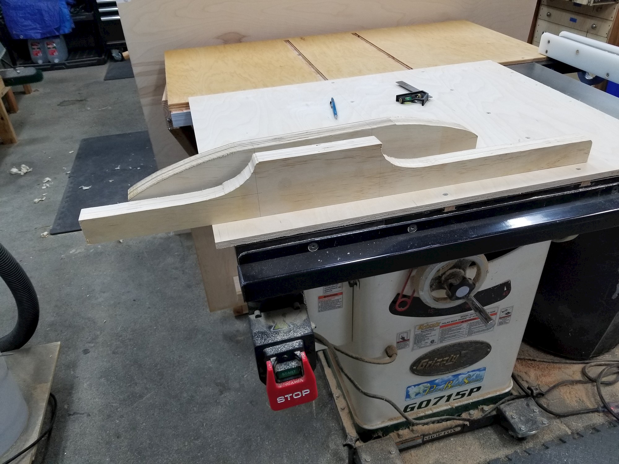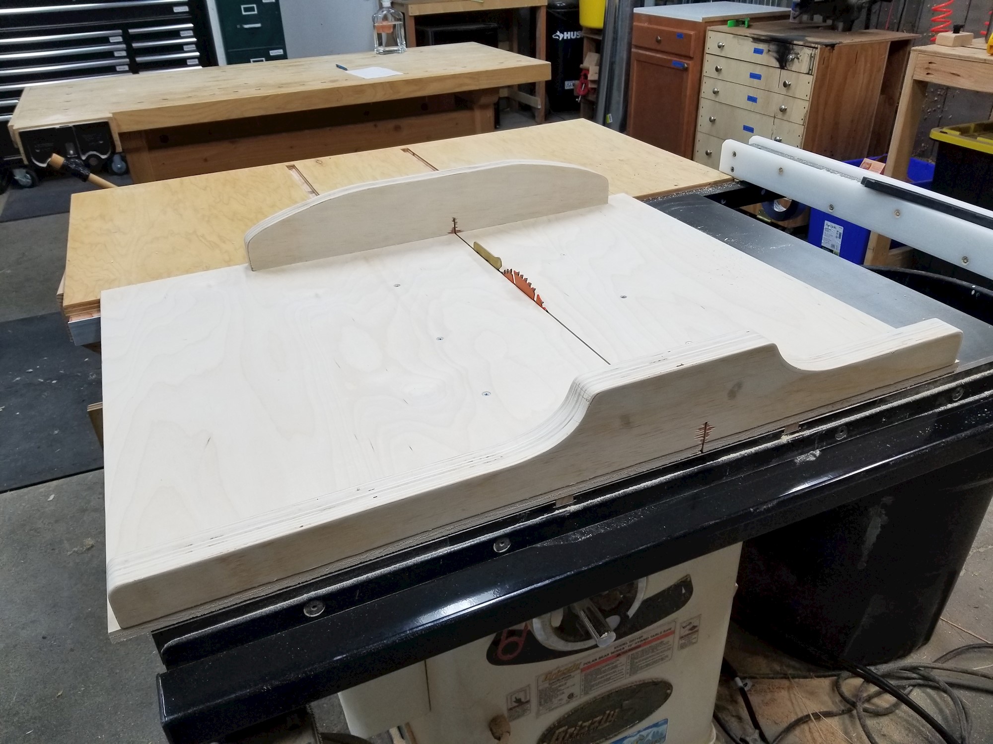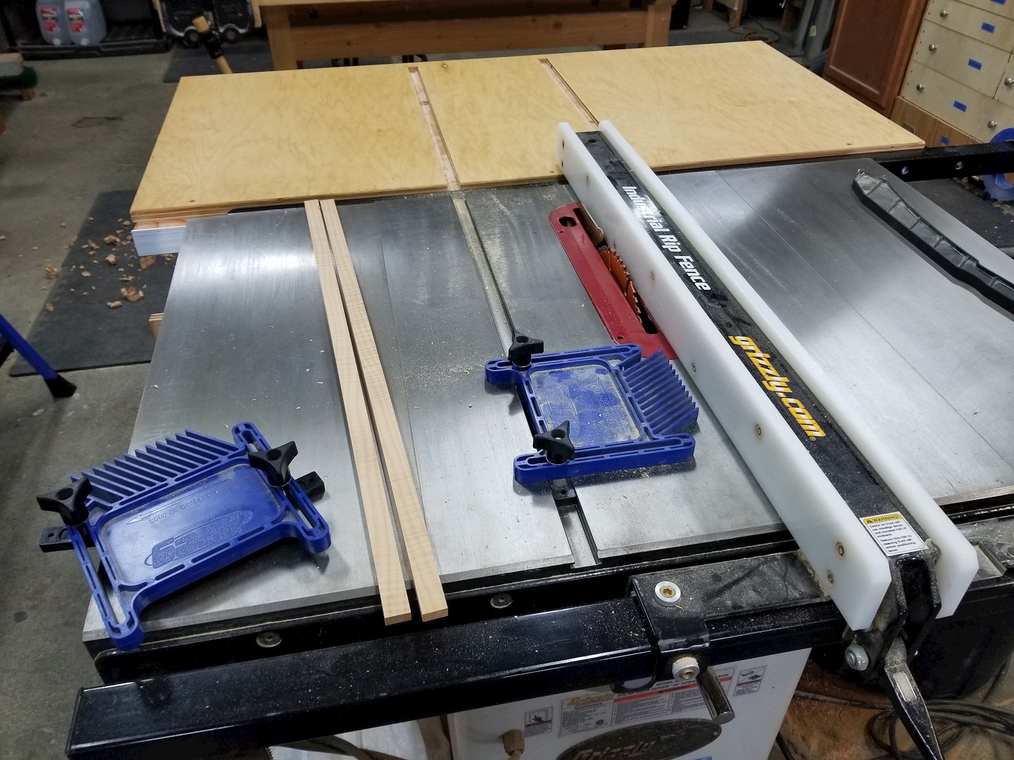 90-degree crosscut sled for the table saw. In preparation for doing some "finer" woodworking again (sofa table, bedroom set, etc.), I've been on a jig-building and creature-comfort binge lately. In that vein, this crosscut sled should let me do quicker 90-degree cuts. All plywood.