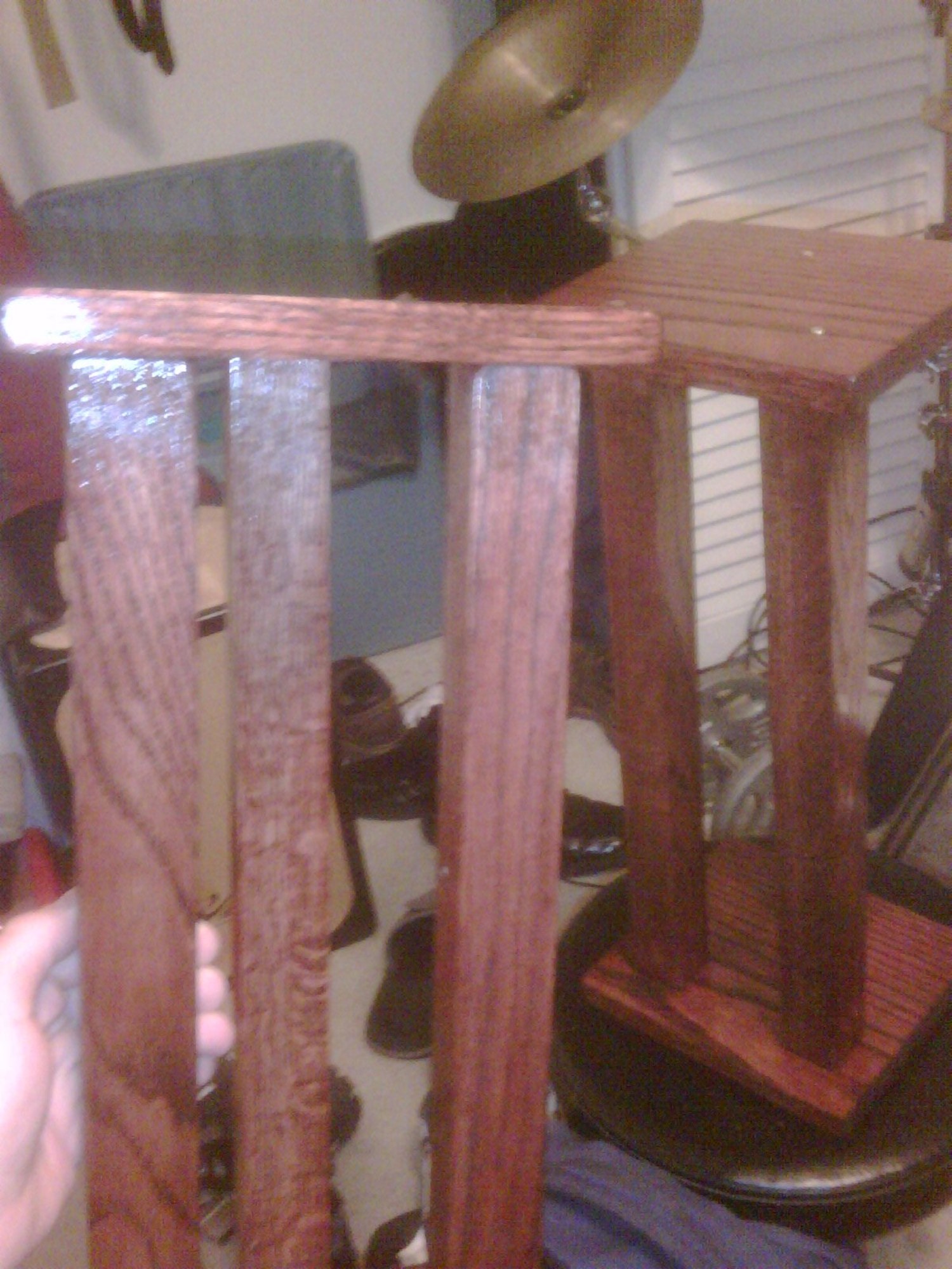 Studio speaker risers. Dimensional Oak with Red Oak stain. Finished with polyurethane.