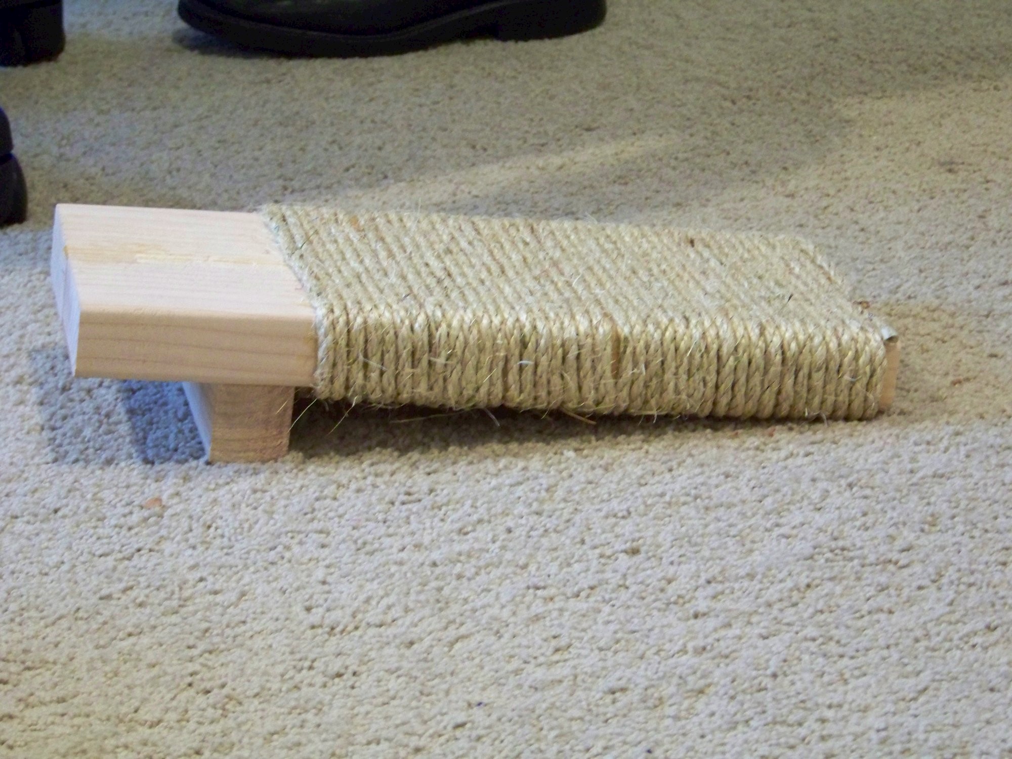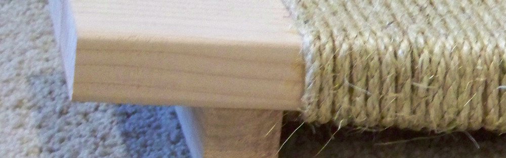 Horizontal scratcher for Alice from scrap (to avoid dropping $20 on a piece of cardboard). 2x4 stud scrap, sisal rope, glue and nails.