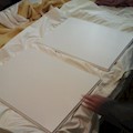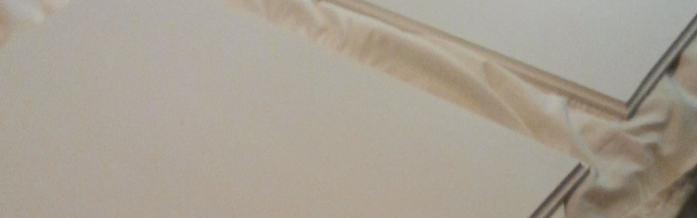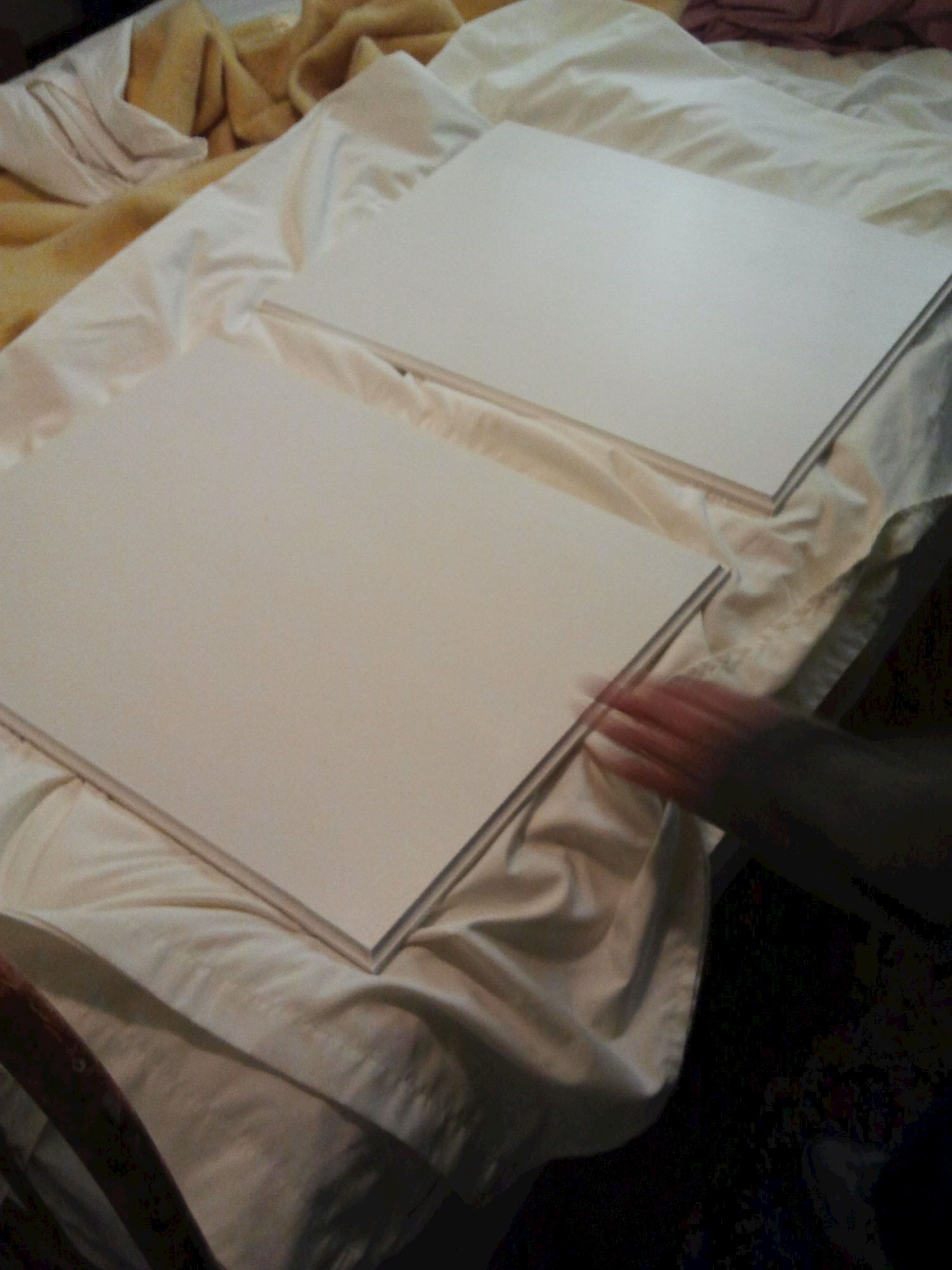 Edge-profiled cabinet doors for my grandmother's bathroom cabinet. MDF and white latex paint. No additional finish.